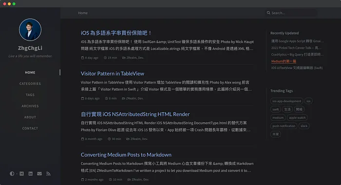 1. https://zhgchg.li -> Used in Github Pages Jekyll Blog