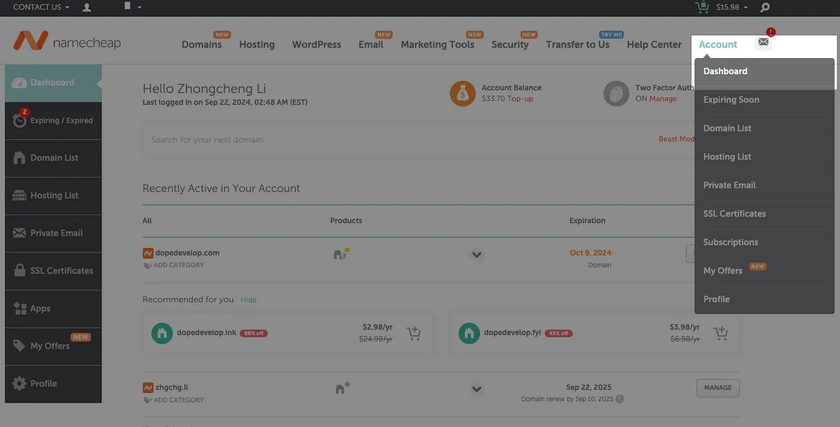 1. Purchase & Acquire Domain by Namecheap (Established Domain Provider)