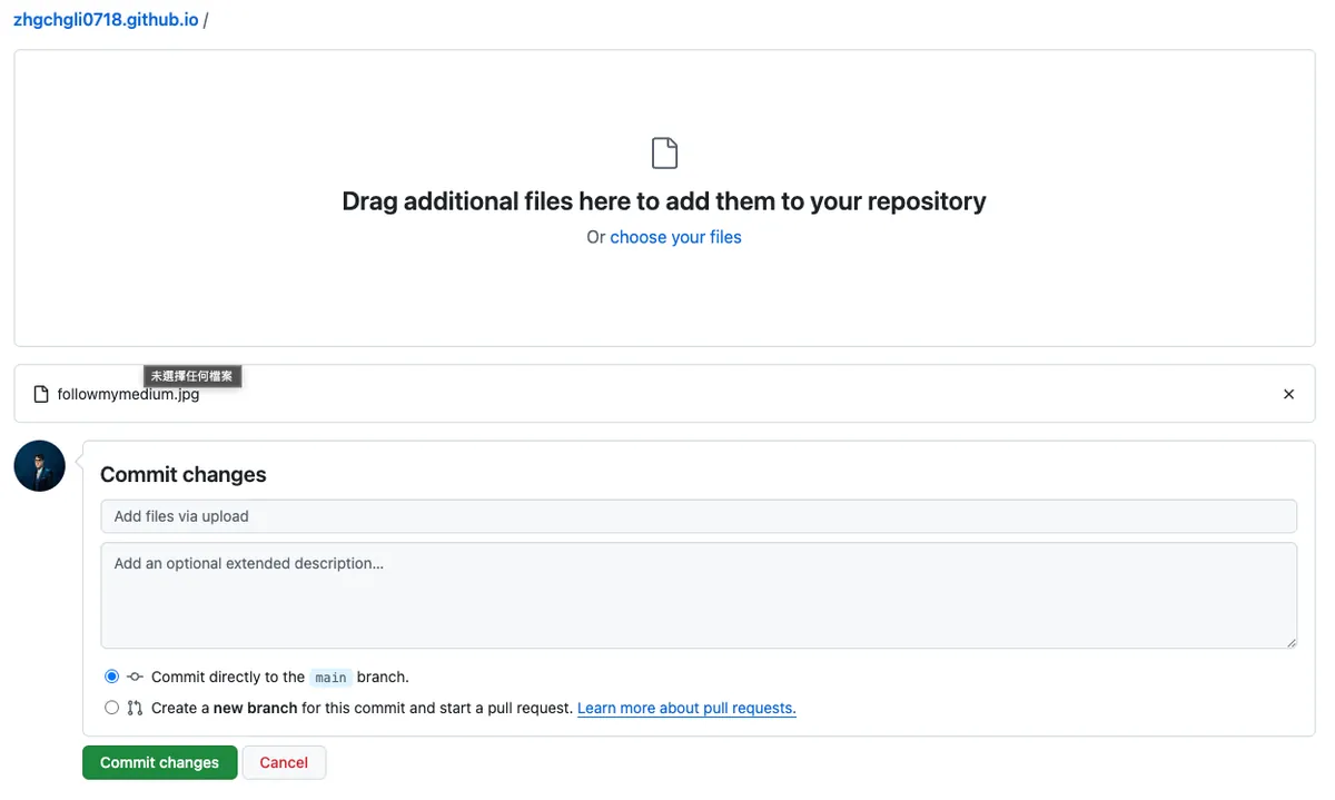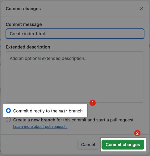 - Choose “Commit directly to the main branch”