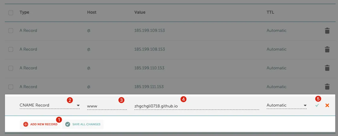 3. Add a CNAME Record According to the Desired Github Pages Repo: