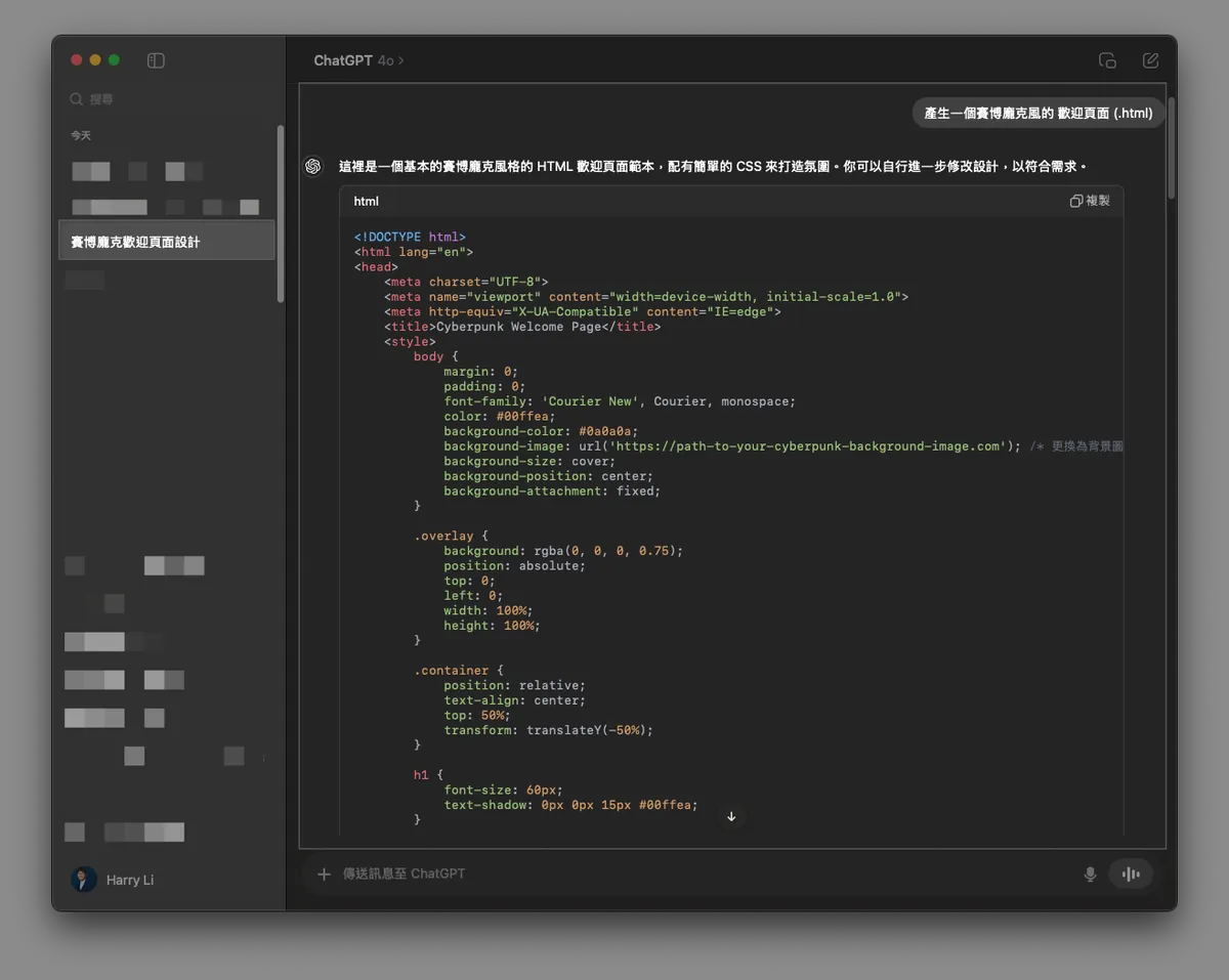 Generate a cyberpunk-style welcome page (.html)