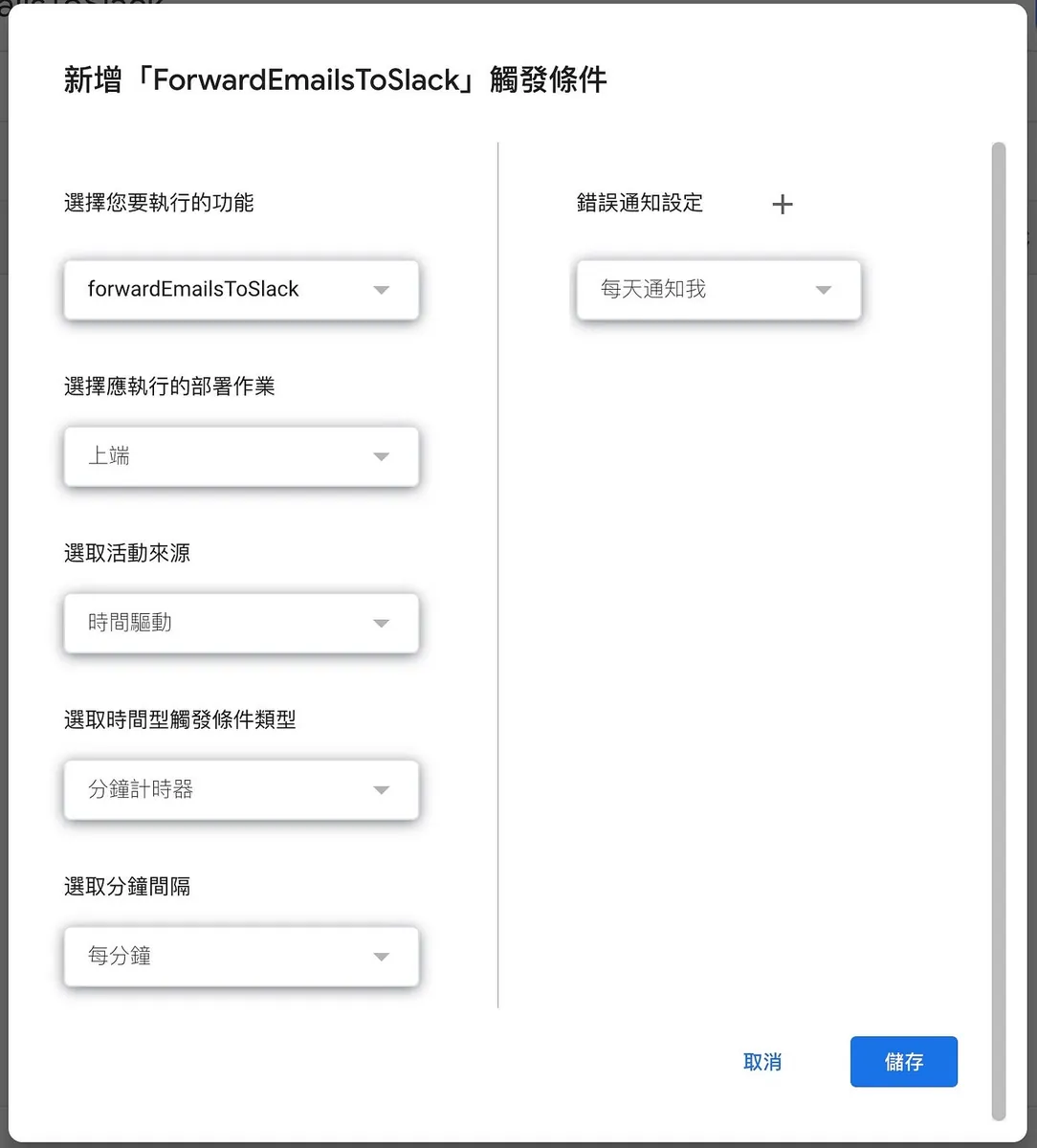 Here, for demonstration, it is set to run every minute. I think checking emails once every hour is sufficient for real-time needs.