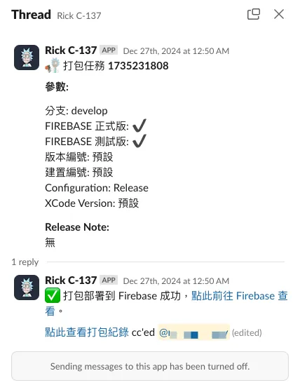 Previously, team members passionate about automation built a complete Slack App web service using Kotlin+Ktor. It integrated Slack messages, forms, commands, and more to receive and forward CD packaging requests, trigger GitHub Actions, and send results back to Slack.