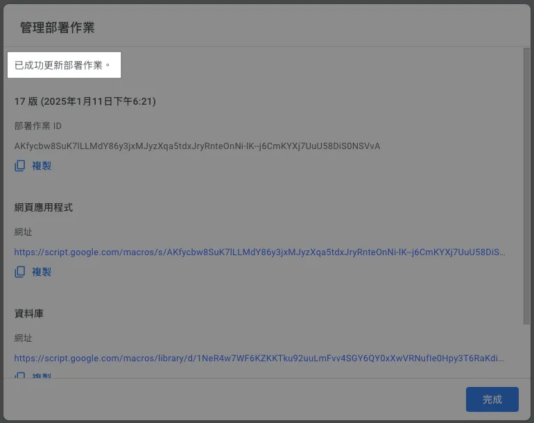 This feature has been integrated into the actual packaging tool. Please refer to the latest article case: “CI/CD Practical Guide (4): Using Google Apps Script Web App to Connect GitHub Actions and Build a Free and Easy Packaging Tool Platform”