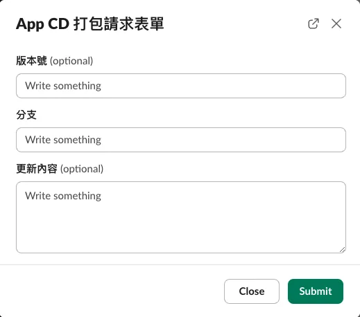 At first, we considered using a Slack App as the CI/CD GUI form service based on our team’s previous experience. However, we currently lack the resources to build the service with Kotlin+Ktor as before; so we decided to quickly try building it using a Function as a Service platform.