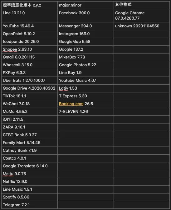 I briefly analyzed the version number formats of the apps on the leaderboard, as shown in the above image.