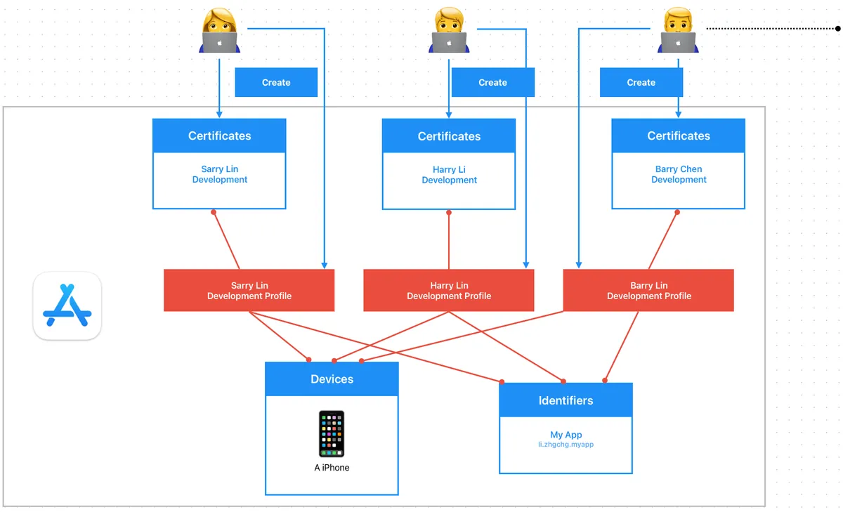 Development CertificateandDevelopment Profile; assuming there are 1,000+ developers in the organization, the Certificates, Identifiers & Profiles, Devices backend becomes extremely chaotic and unmanageable.If you have an outsourced team responsible only for development, you still need to add them to the Apple Developer Program backend so they can create their own development certificates and profiles.