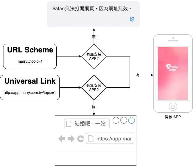 You can see that the iOS Deep Link mechanism only checks whether the app is installed; if it is, it opens the app, otherwise it does nothing.
