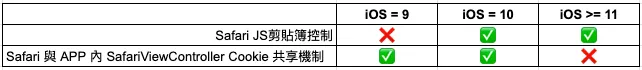 iOS 9 does not support JavaScript automatic clipboard but supports Safari and APP SFSafariViewController “Cookie Sharing Method”