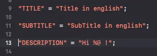 ;, valid Key-Value pairs)The multilingual keys used in the code must have corresponding definitions in the Localizable.strings file.