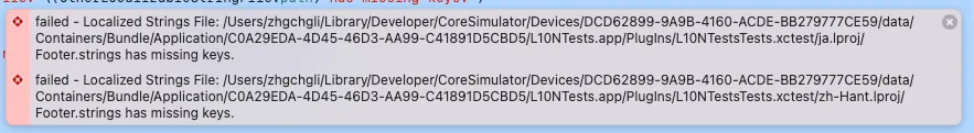 XCTFail("Localized Strings File: \(otherLocalizableStringFile.path) has missing keys.")