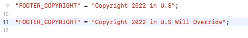 Localizable.strings files cannot have duplicate keys (otherwise the value will be accidentally overwritten)