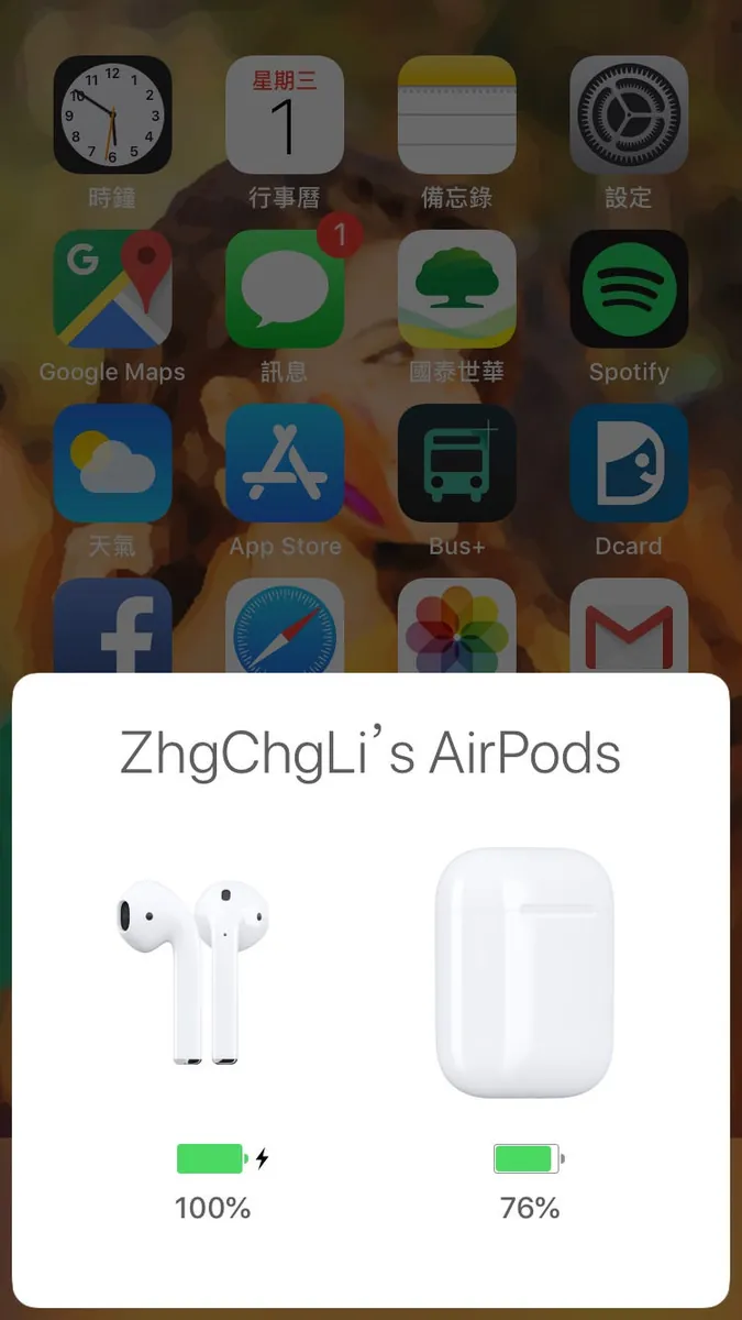 In the future, you can swipe left on the Control Center to directly check the AirPods battery level (showing the battery of the earbud with lower charge). To see the battery levels of the left and right earbuds and the case, you need to put one AirPod back into the case and open the case (because the case itself has no Bluetooth function):