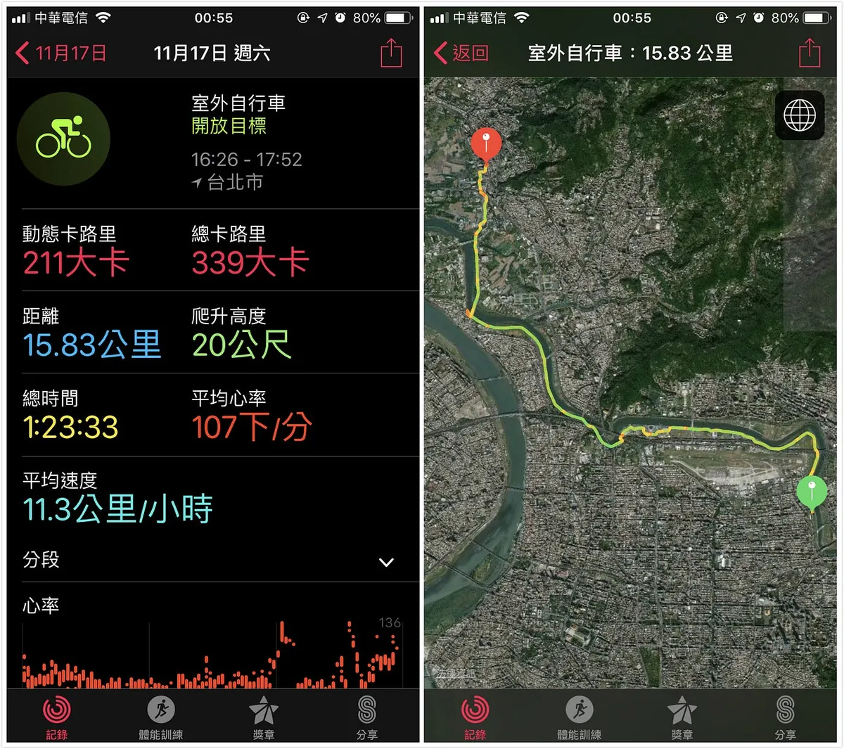 For physical training, I use Nike Run Club for running instead of the built-in app. Last week, I tried the built-in fitness training for cycling -> “Outdoor Cycling” to record my ride. It tracks elevation, distance, time, route, and heart rate. Awesome!