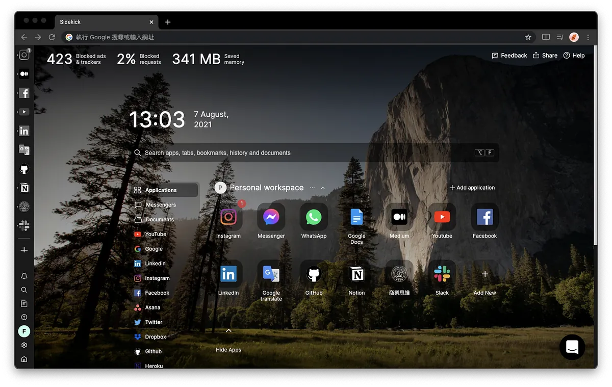 After using it for a while, thanks to the painless transition, I have completely abandoned Chrome. There’s nothing that requires me to go back to Chrome. The best feature is still the Applications on the left side, where you can add frequently used work websites for quick switching and to get the latest notifications.