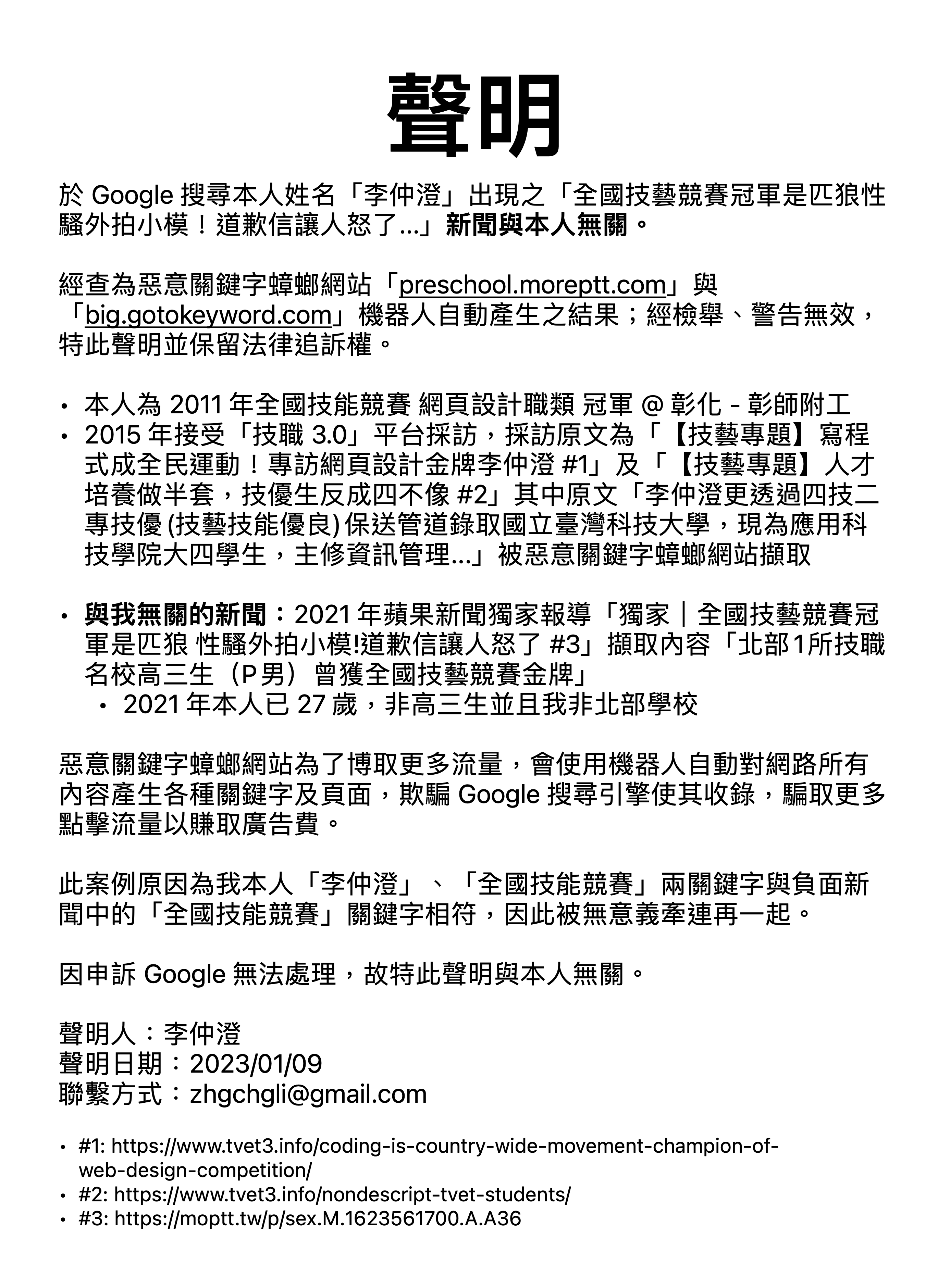 (To avoid increasing Google’s indexing of unrelated malicious terms, the statement is presented as an image)