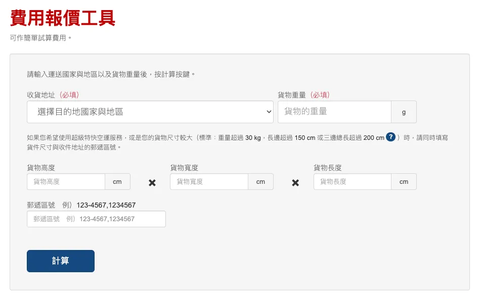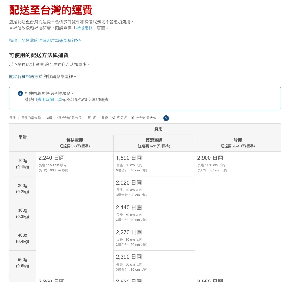 https://globalexpress.rakuten.co.jp/help/country/fee?country=TW