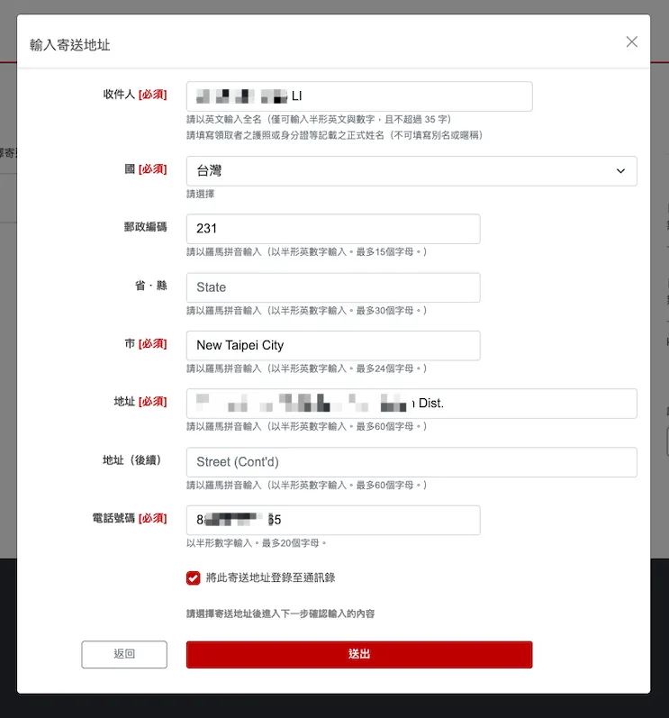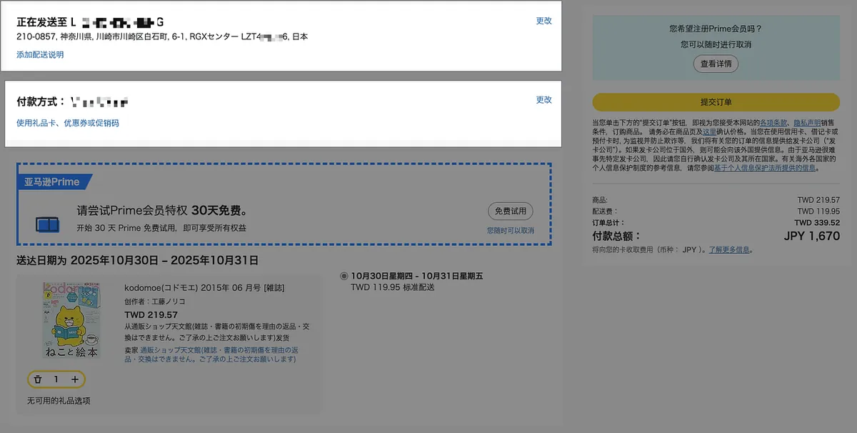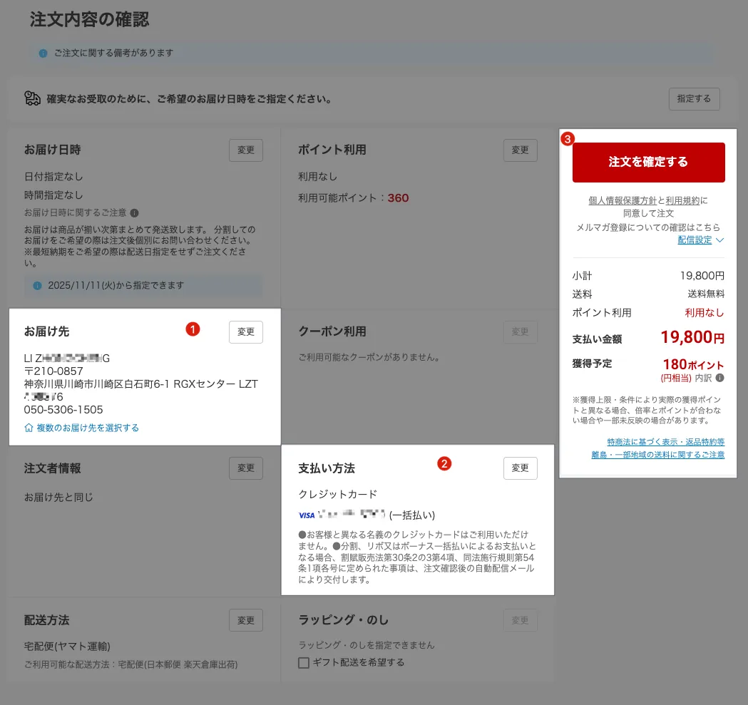 Delivery Address: You can directly select the newly added Rakuten forwarding address or manually add a forwarding address (make sure to enter the full forwarding address including the final number).