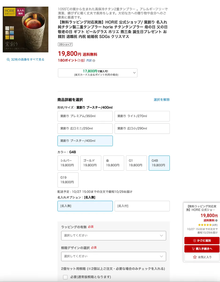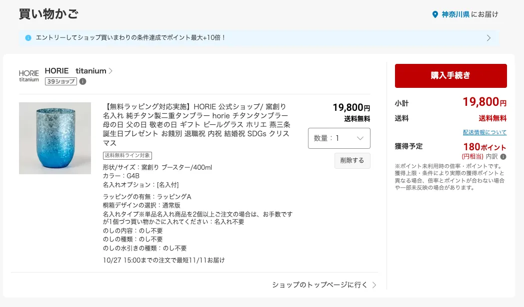 Shopping on Rakuten Ichiba — Horie Titanium Cup Order Tutorial