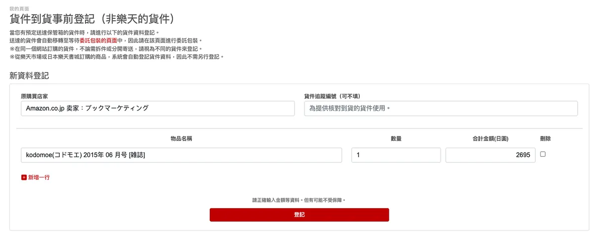 For items not purchased directly from Rakuten, it is recommended to register them after placing the order before shipping to the forwarding address.