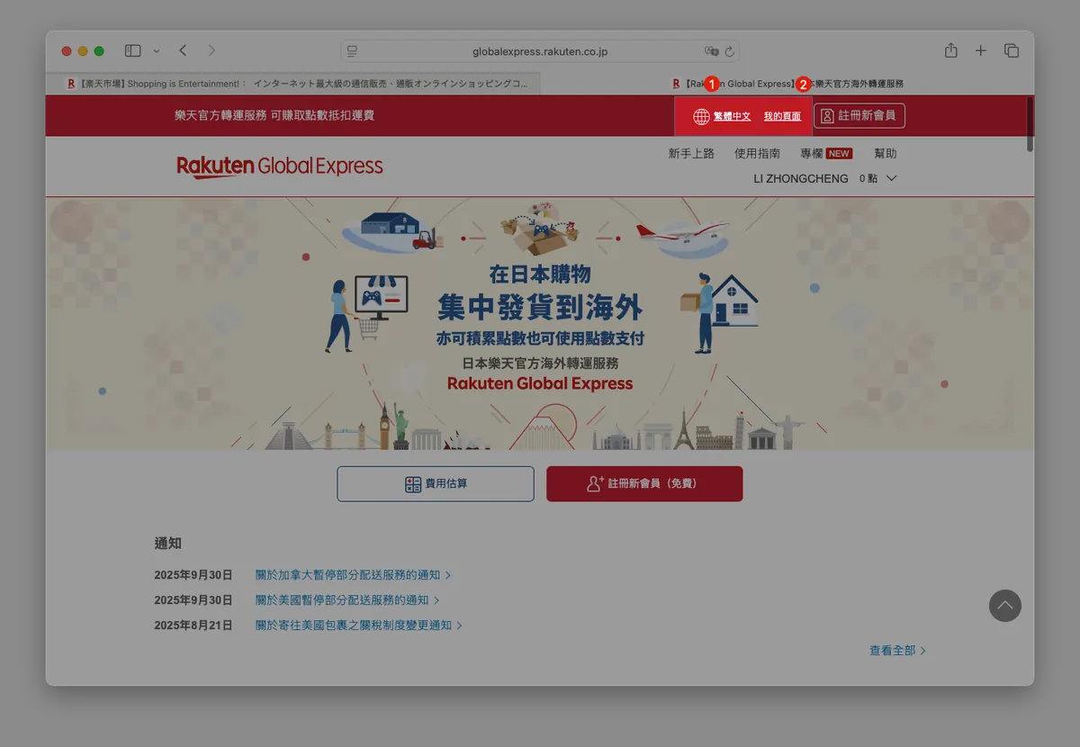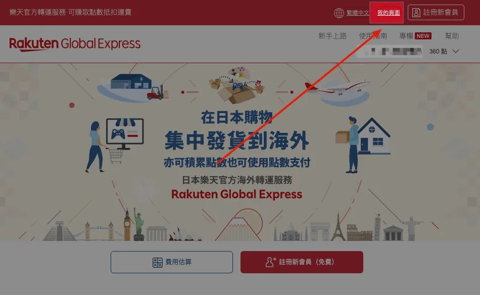 After registering on Rakuten, you will be automatically logged in when you go to Rakuten Forwarding.