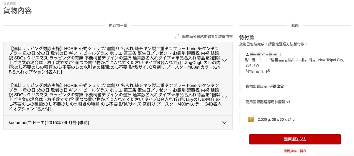 So far, registration on the Japanese Rakuten site, using Rakuten forwarding, placing orders, shipping, sending back to Taiwan, and EZWay are all done. Now, just wait for the goods to arrive!
