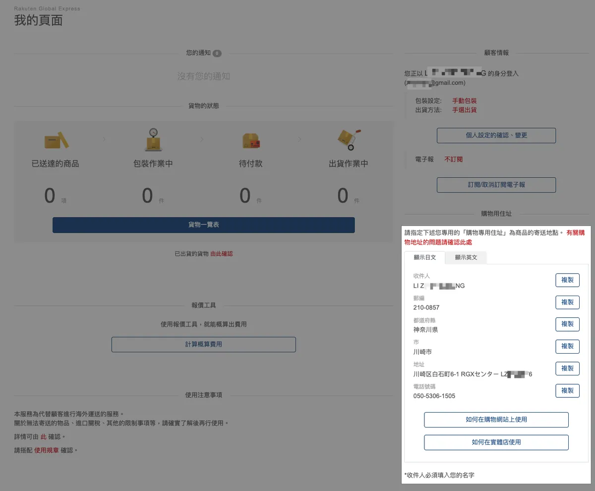 Activate Rakuten Forwarding Address and Complete Real-Name Verification