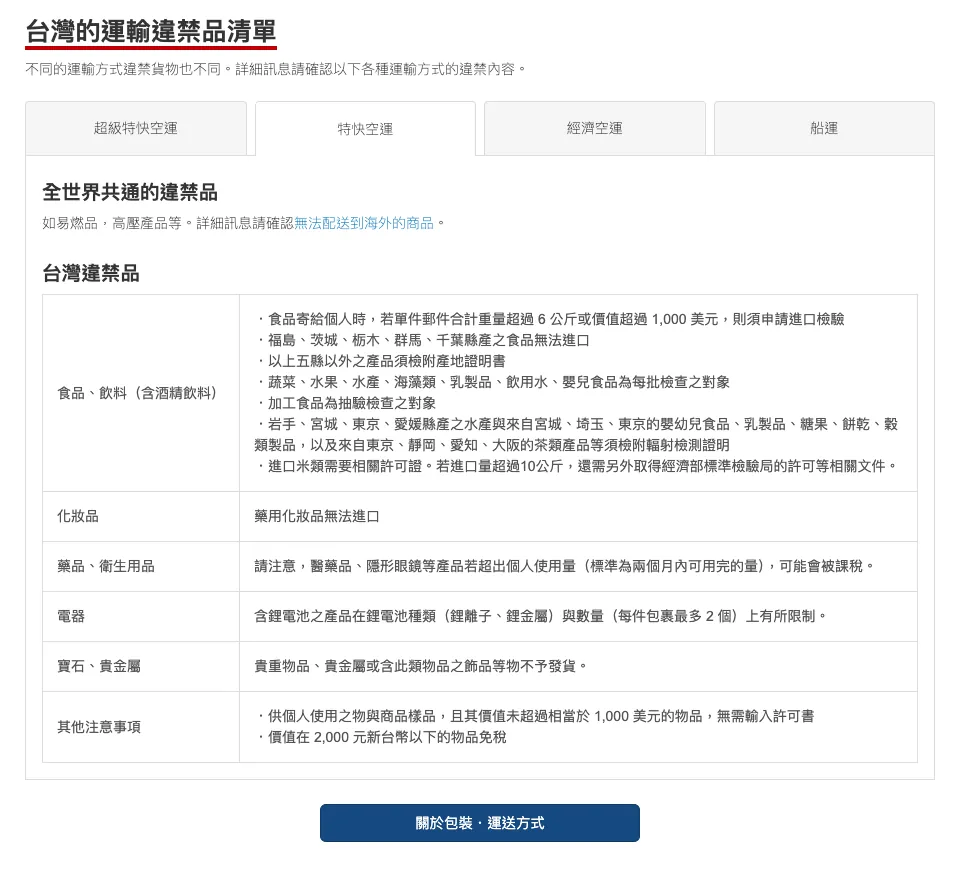 If you want to buy alcohol, cigarettes, or similar items, be sure to check online tutorials first. From what I’ve seen, after the items arrive in Taiwan, you need to present a notification letter and pay additional taxes before the goods are released.