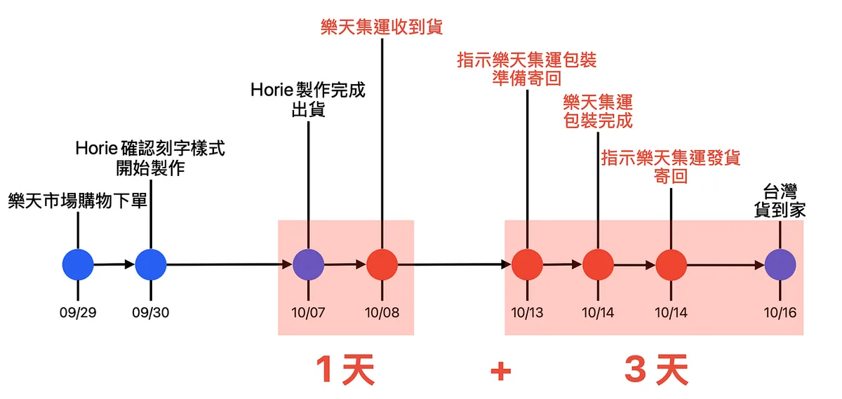 After receiving the HORIE shipping notification, the package usually arrives at the Rakuten forwarding warehouse within 1–3 days.