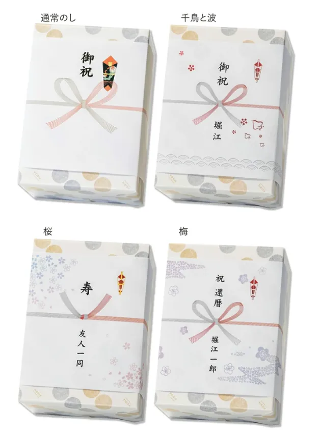Types of Noshi Mizuhiki: Styles of decorative cords for gift wrapping, as shown in the image below. If not needed, select “No Noshi.”