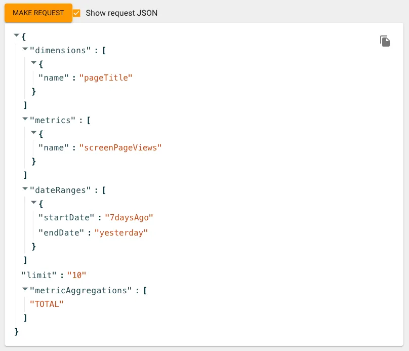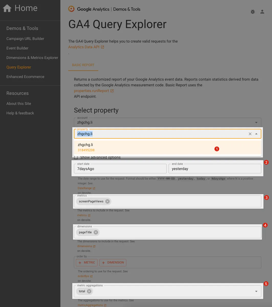 Step 1. Use the GA4 Query Explorer official tool to generate data report query parameters