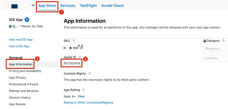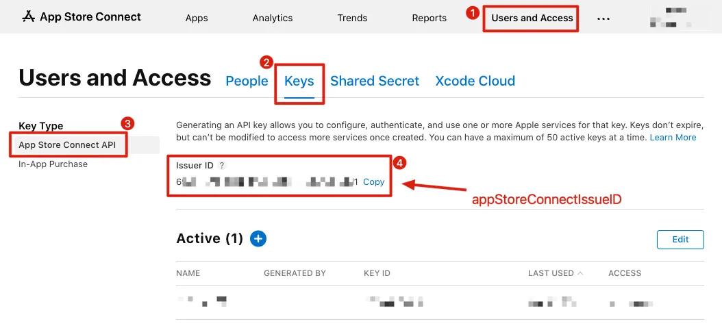 iOS is easier; we only need to get the following four pieces of information from App Store Connect: