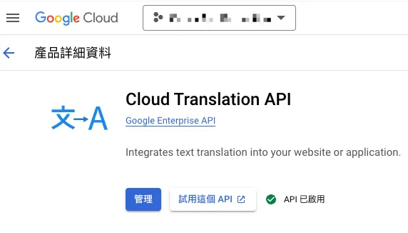 Please first ensure that the GCP Project of the Service Account created in Step 2 has the “Cloud Translation API” enabled