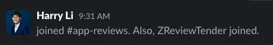 A prompt message will appear upon successfully joining the channel: ZReviewTender joined.