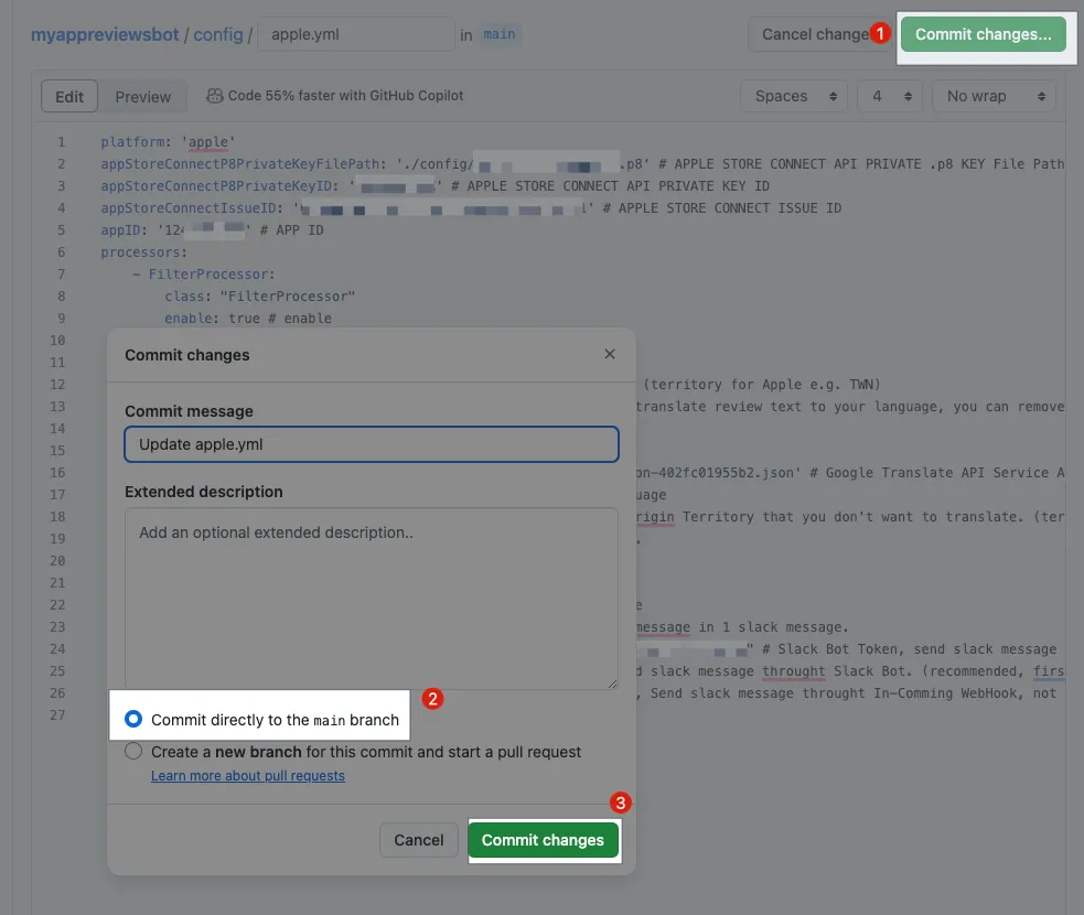 You don’t need to pay monthly fees for App Review Bot or similar review monitoring services.Security: The credentials and keys used to fetch reviews are securely stored in your Github Private Repo, and only you have access.