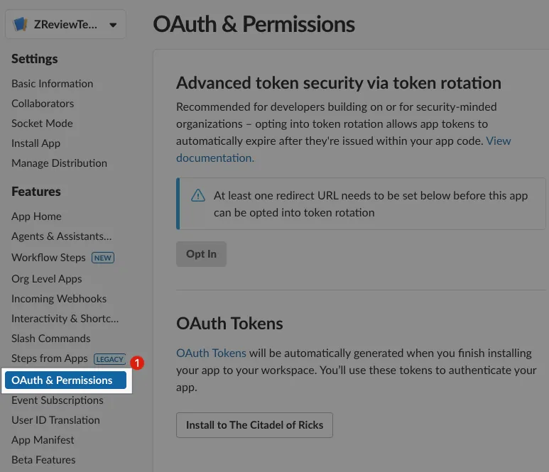 Select “OAuth & Permissions”