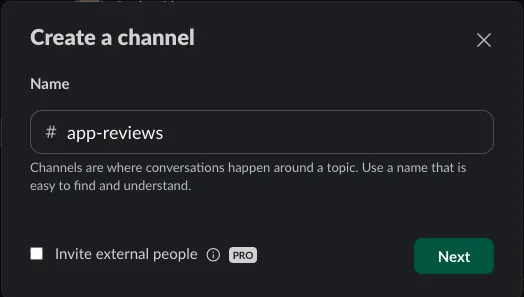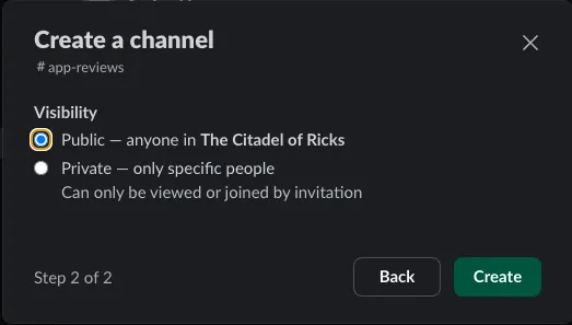 Private: Private channel, ⭐️⭐️⭐️ You need to add the newly created Slack App: