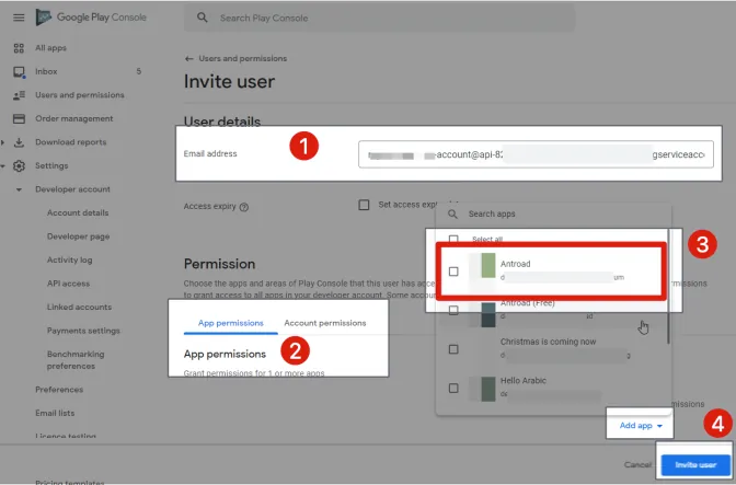 Android is more complex. You need to first enable the API in the Google Cloud Project associated with the app, create a Service Account, and add the Service Account to the Google Play Console with app permissions.