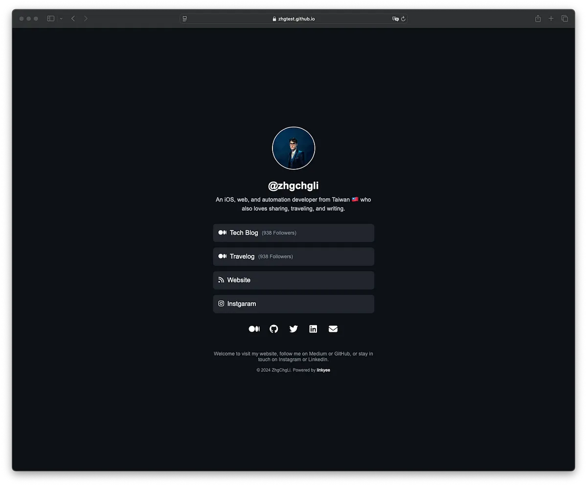 © 2024 <a href="https://zhgchg.li" target="_blank">ZhgChgLi</a>. Powered by <a href="https://github.com/ZhgChgLi/linkyee" target="_blank">linkyee</a>.