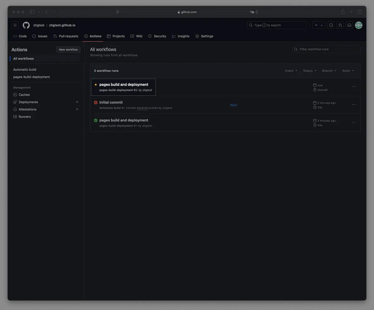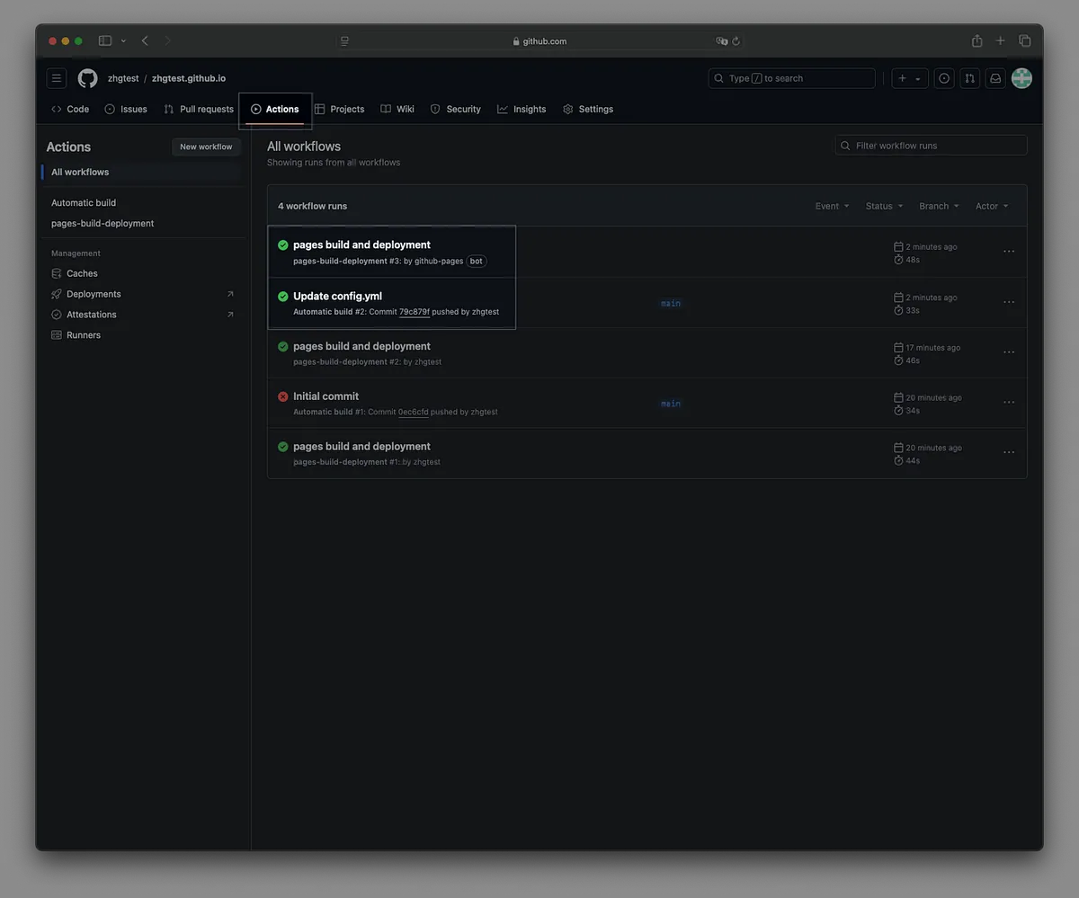 Step 6. Go to Settings -> Actions, and wait for the first deployment to complete:
