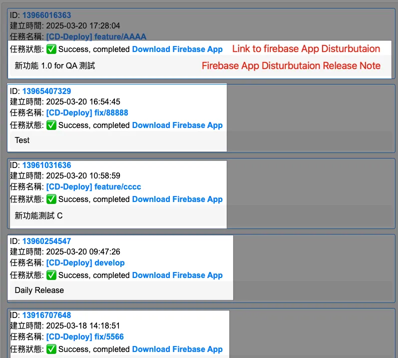 Combined with the previous article “Using Google Apps Script Web App Form to Connect Github Action CI/CD Workflow”, this integrates the CI/CD tasks and displays the Firebase App Distribution download link on the Web App for colleagues to download directly.