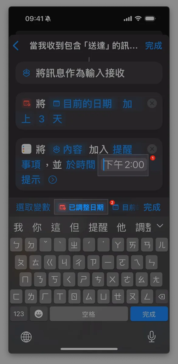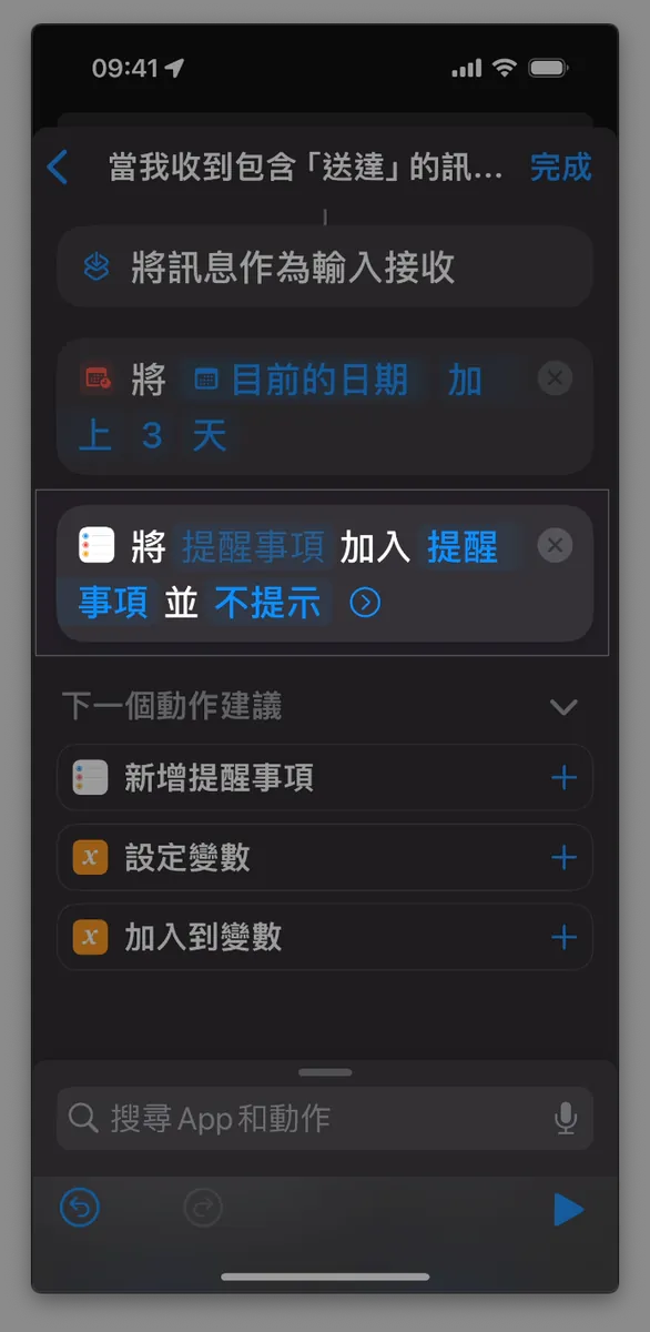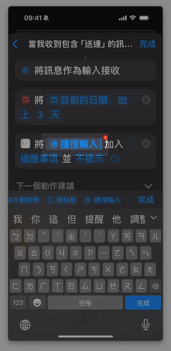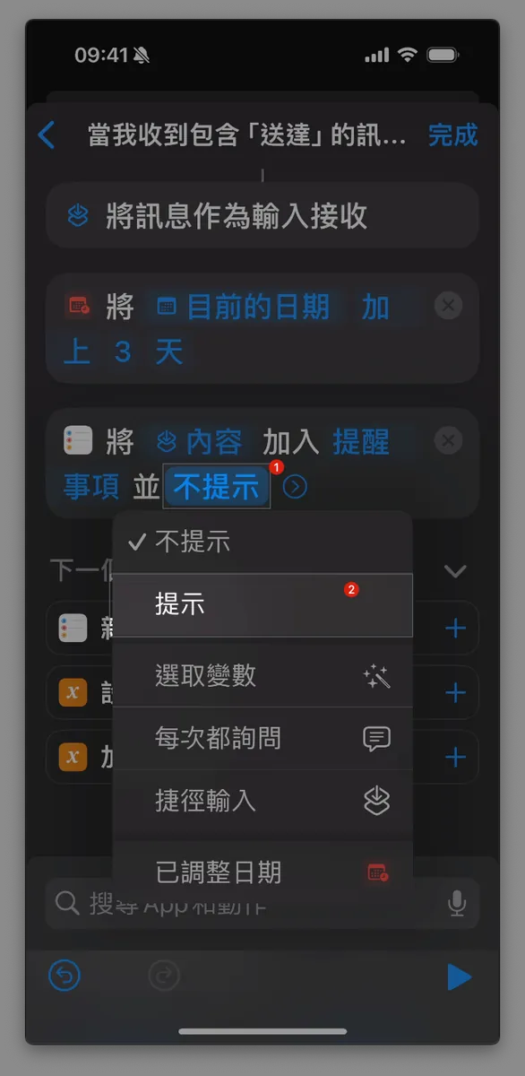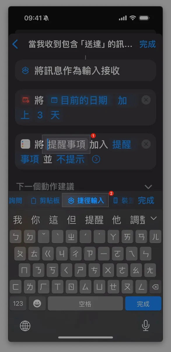 「提醒事項」input box inAdd "Reminders" to "Reminders" without prompting.Swipe right to find and tap