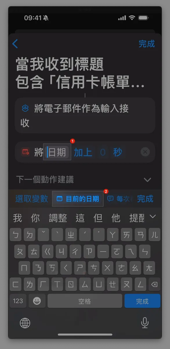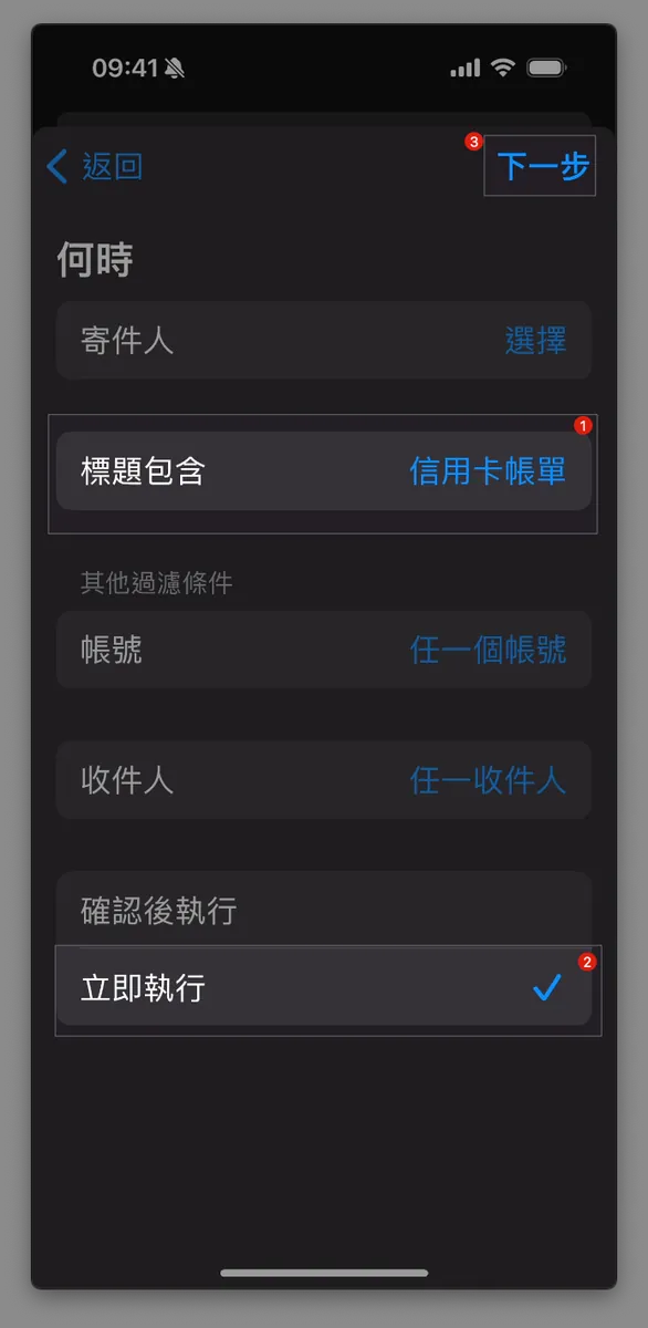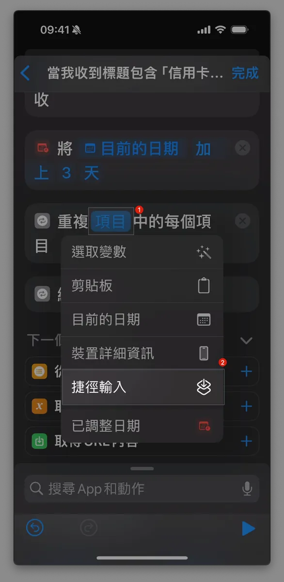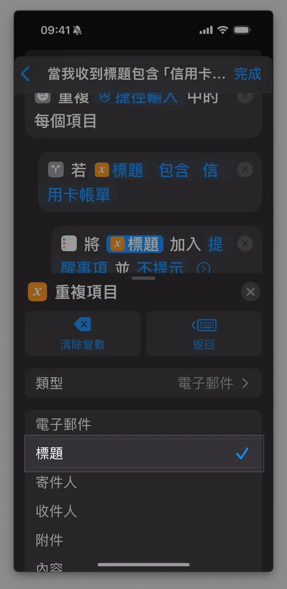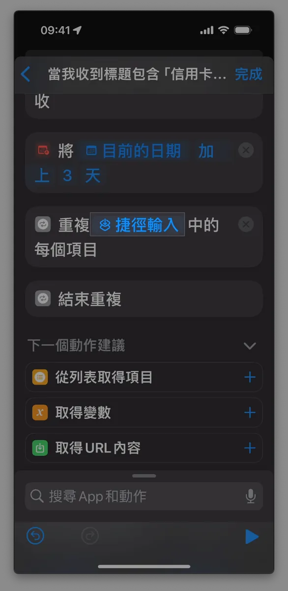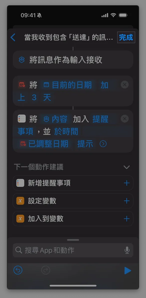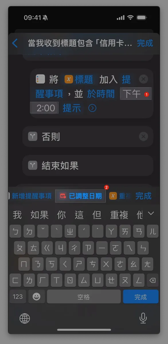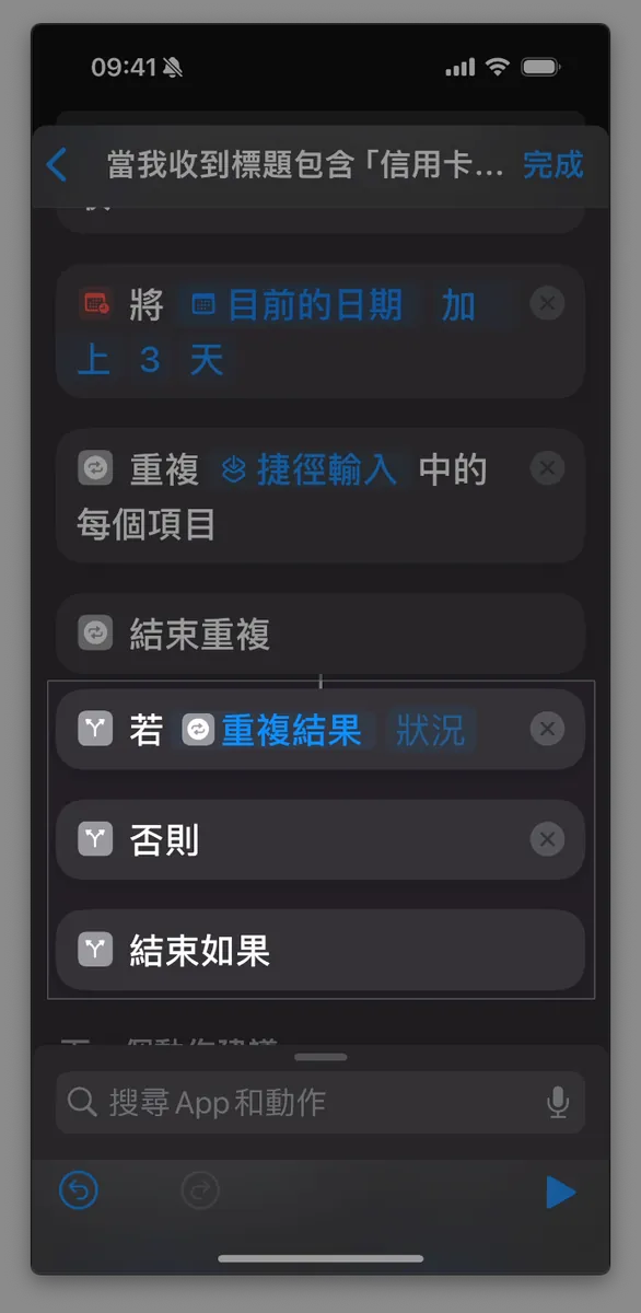 Another life notification is the credit card bill alert; set it up like an SMS, so when an email is received, it can also trigger a shortcut automation to add a reminder. However, since automation features are not yet available to third-party apps, it can only be triggered using Apple’s Mail App.
