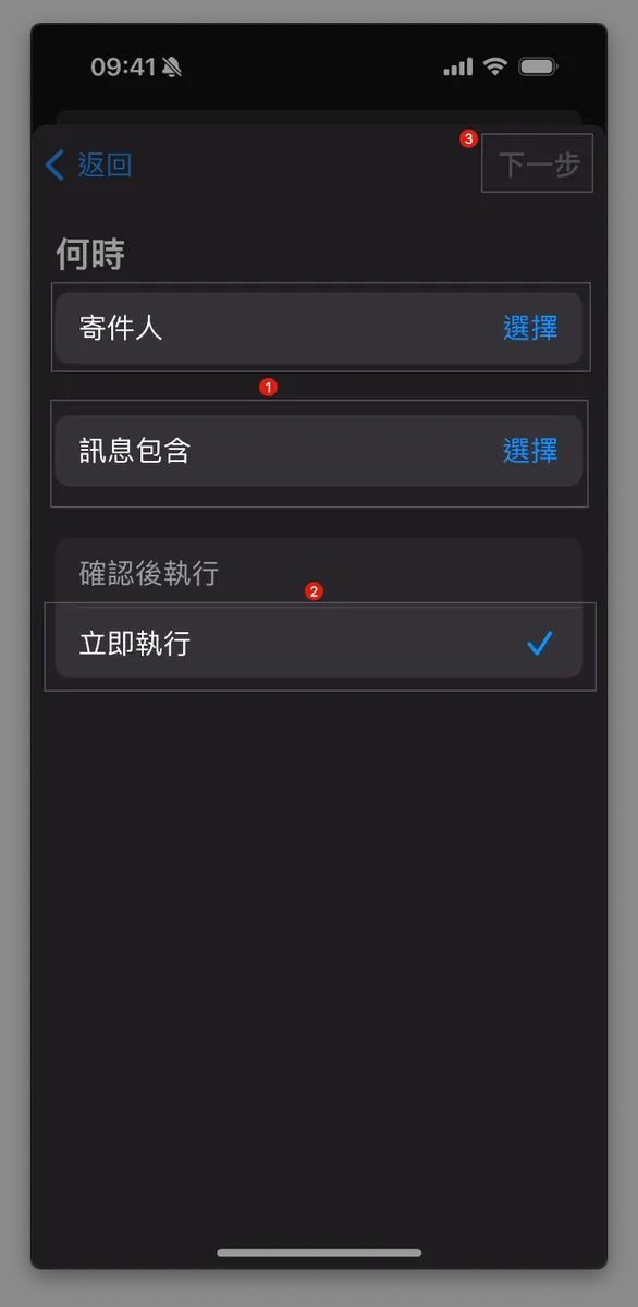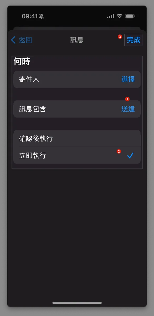 Following the previous introduction of automatic SMS forwarding conditions, here set Message content contains "delivered" and change to "Execute immediately".