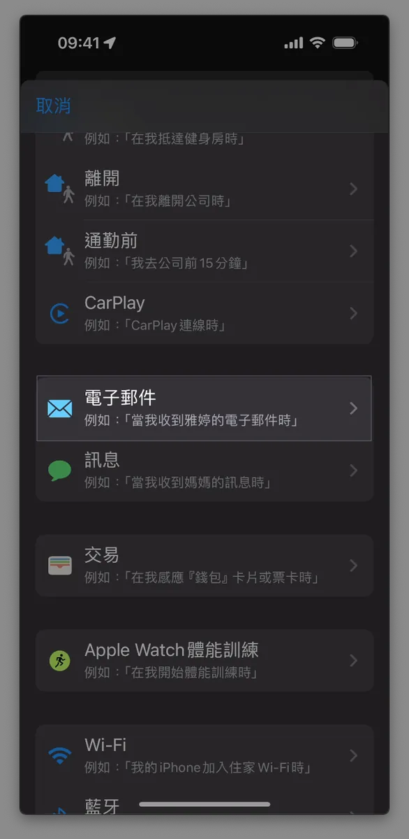 The automatic execution conditions are currently limited to iOS itself or its own apps, such as: specific times, arriving at or leaving a location, detecting NFC, receiving messages, emails, or connecting to Wi-Fi, battery level, Do Not Disturb mode, detecting sounds, and so on.