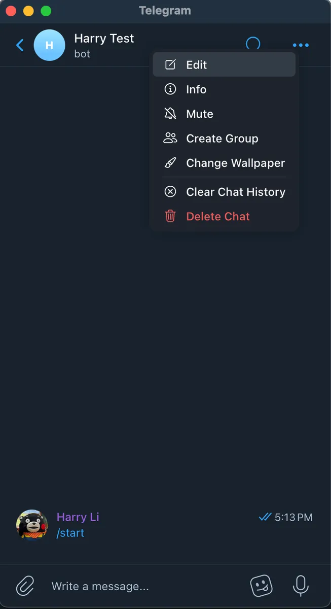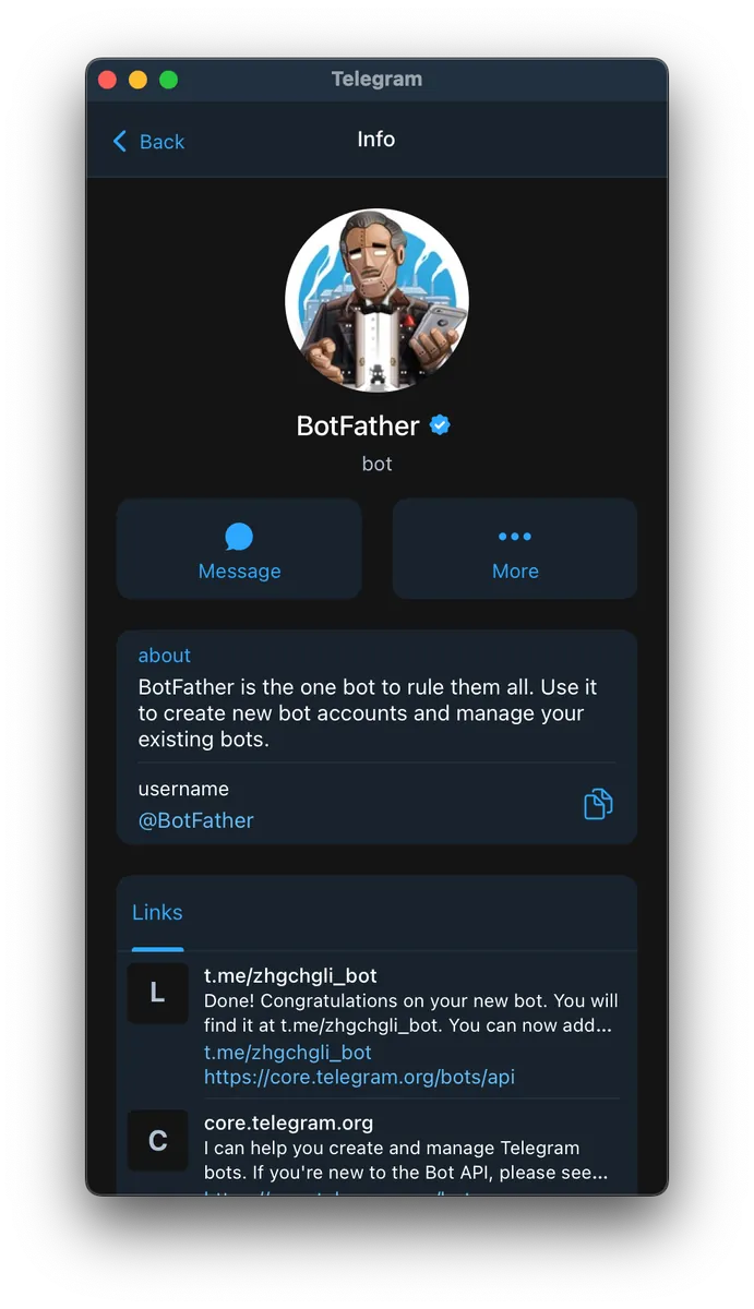 Applying for a Telegram Bot is very simple; you don’t even need to open a webpage. Just interact with the official BotFather bot.