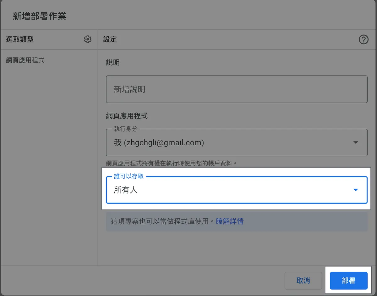 ⚠️⚠️⚠️ Please note, if the Google Apps Script code changes, you must click Deploy -> Manage Deployments -> Select Create New Version for the changes to take effect. For details, please refer to the article above.