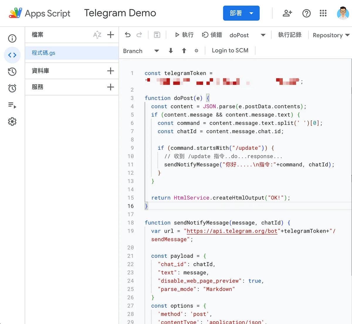telegramToken=your_BOT_API_TokenIn the demo program above, when receiving a POST request with the Command parameter set to