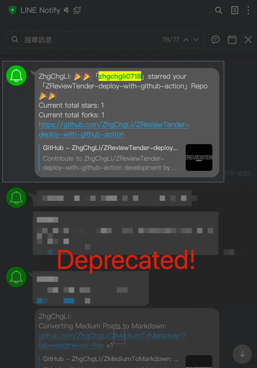 Excerpted from Line Notify Official Website, Line announced on 2024/10/08 that Line Notify will be completely shut down on 2025/04/01. To continue using Line for message notifications, only the paid Message API can be used.
